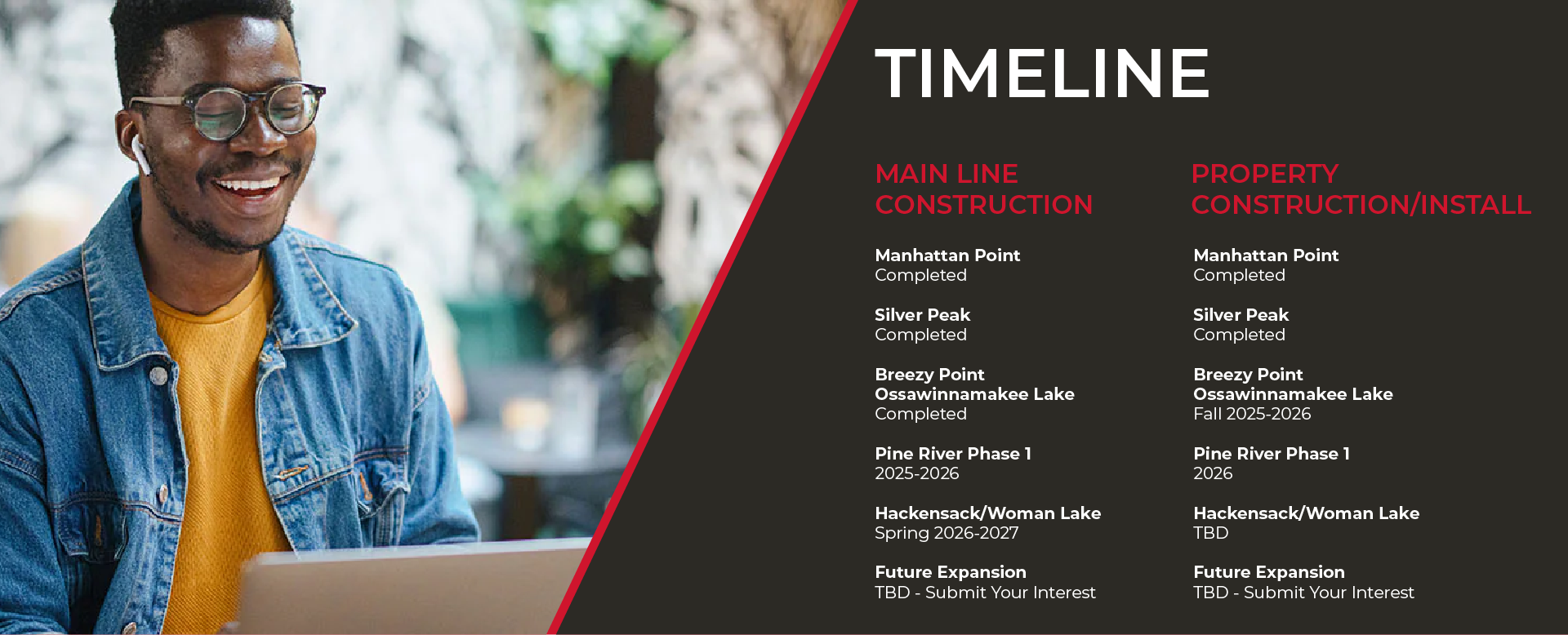 Roads and neighborhoods without enough sign-ups may be delayed for fiber installation. Signing up early ensures your location is included in the first wave of construction.